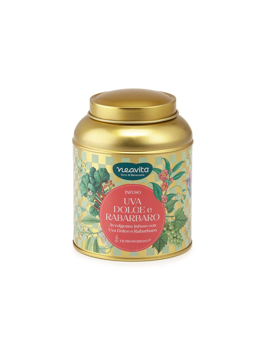 L’Infuso Uva Dolce e Rabarbaro Neavita è una miscela equilibrata e originale che unisce la dolcezza naturale dell’uva alle note fresche e leggermente acidule del rabarbaro. Il risultato è una bevanda piacevole, aromatica e dissetante, ideale per ogni momento della giornata.